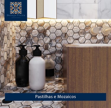 Aplicação artesanal de pastilhas e mosaicos em cozinhas, banheiros, piscinas e áreas gourmet. Alinhamento perfeito e projetos personalizados para paredes de destaque, painéis decorativos e fachadas modernas, trazendo estilo e exclusividade.